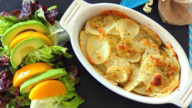 Os propongo un gratín de patatas sencillísimo, una versión muy simplificada del gratín Dauphinois, que también es bastante más ligera porque no le vamos a poner nata y con ello le vamos a restar muchísimas calorías al plato.